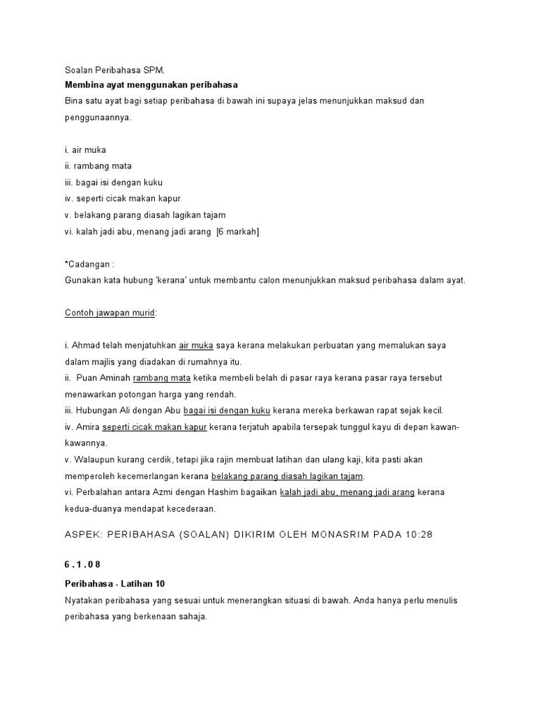 Latihan Peribahasa Spm Dan Jawapan